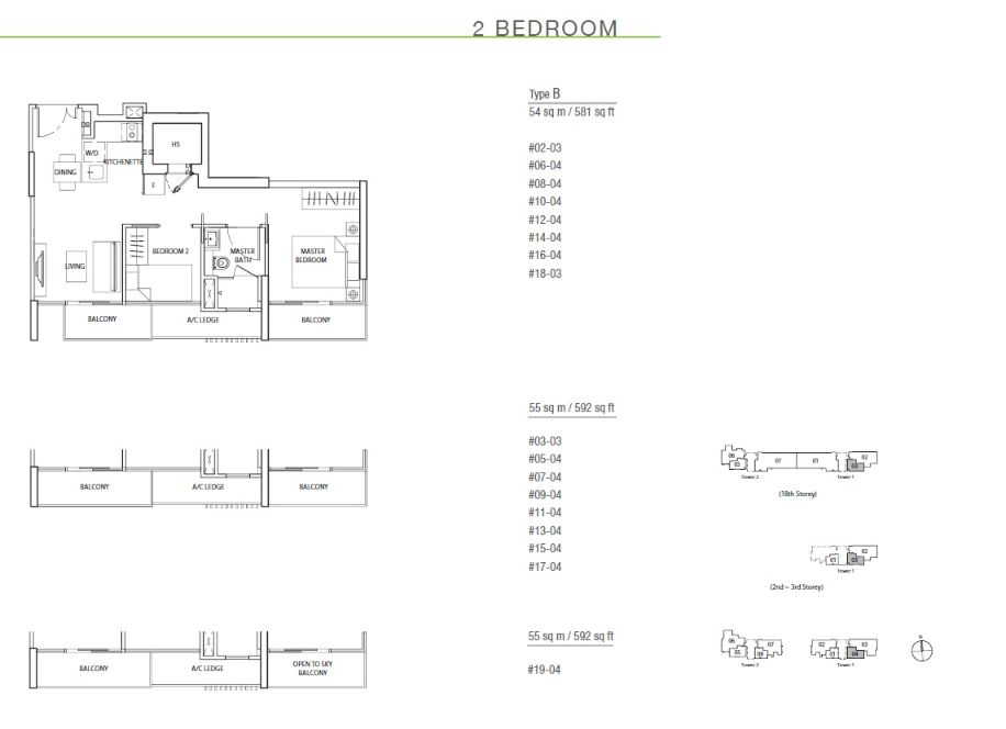 | 2 BEDROOM | B2 | 1,087 | 2 | $2,895,000 |