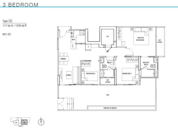 | 3 BEDROOM | C2-a | 1,765 | 1 | $3,951,000 |